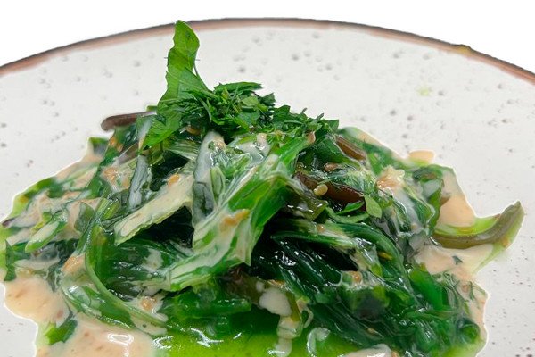 водоросли чука, морковь, редька, ореховый соус, кунжут