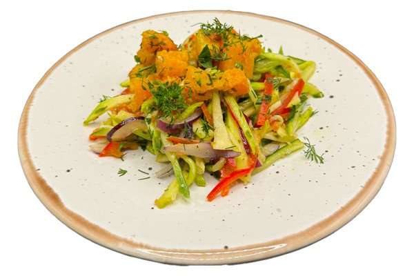 сладкий перец, огурец, тыква, цукини, красный лук, соус винегрет