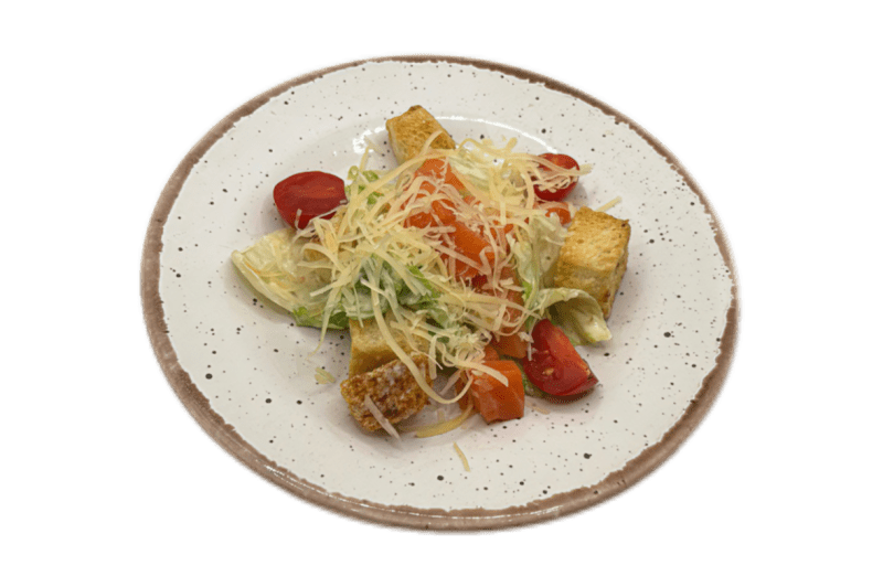 лосось с/с, пармезан, салат айсберг, соус цезарь, томат, гренки, чеснок
