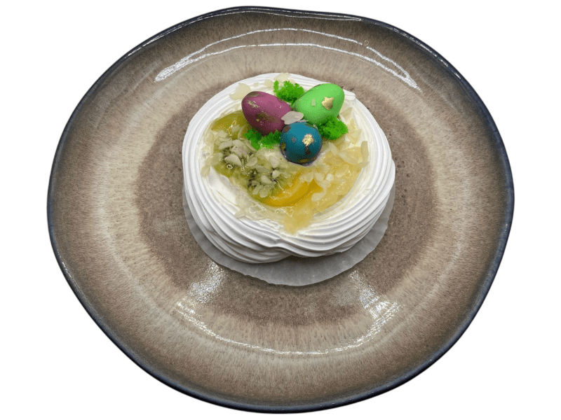яйцо, сахар, сливки, желатин, молоко, крахмал, персик консервированный, ананас консервированный, киви, лепестки арахиса, спред, ванилин, лимонная кислота