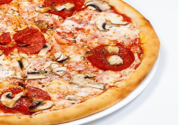 моцарелла, томатный соус, пепперони, ветчина, шампиньоны, мука, дрожжи, масло оливковое, масло растительное, соль, сахар, специи